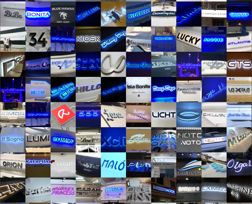 Beleuchtete Schiffsnamen für Yachten und Boote